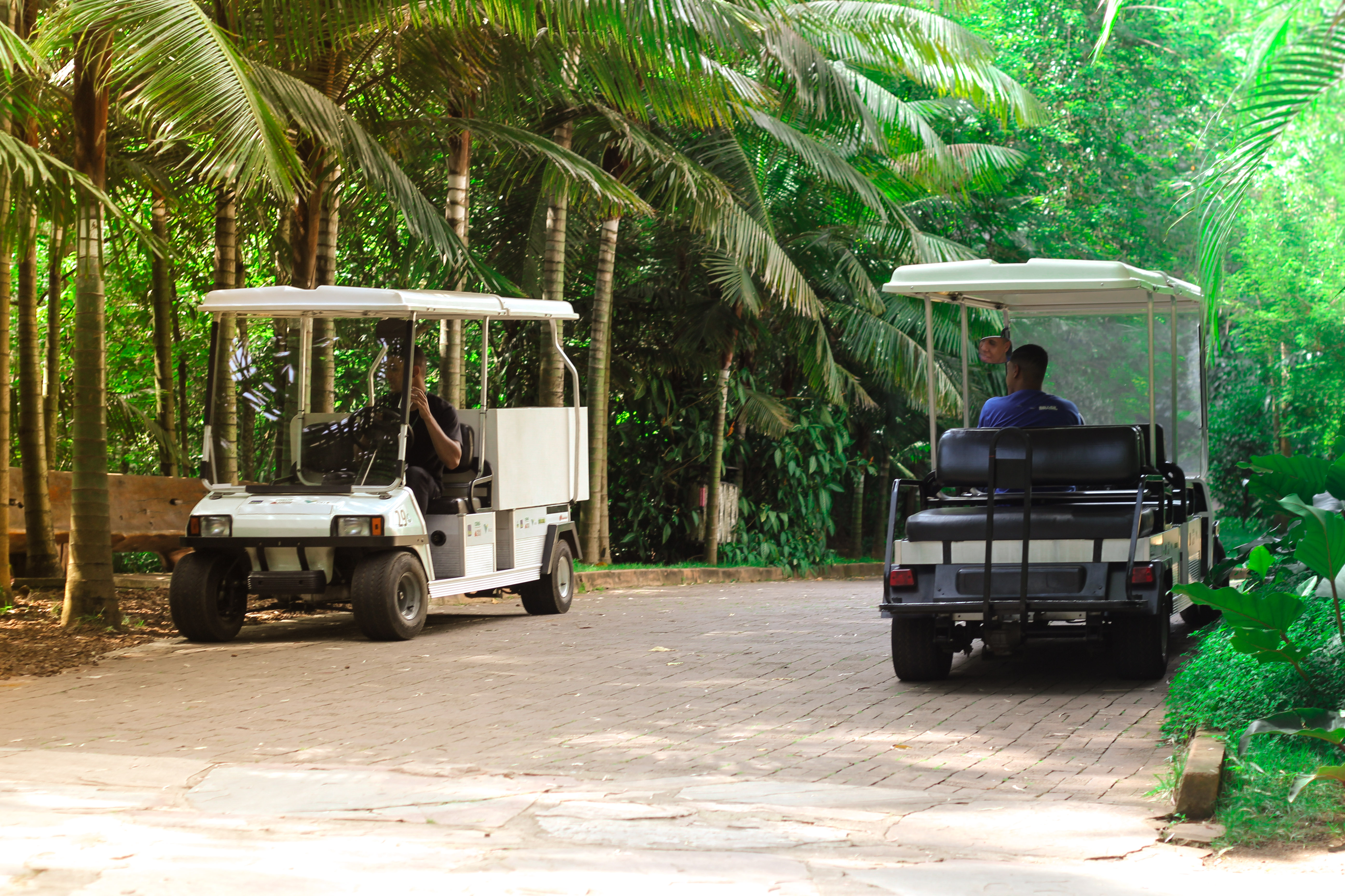 Além disso, o parque oferece um serviço de transfer para os visitantes se deslocarem livremente sem se cansarem demais. Os carrinhos são limpos, novos e o vento fresco que bate na cara, em meio às árvores enormes, complementa a experiência.