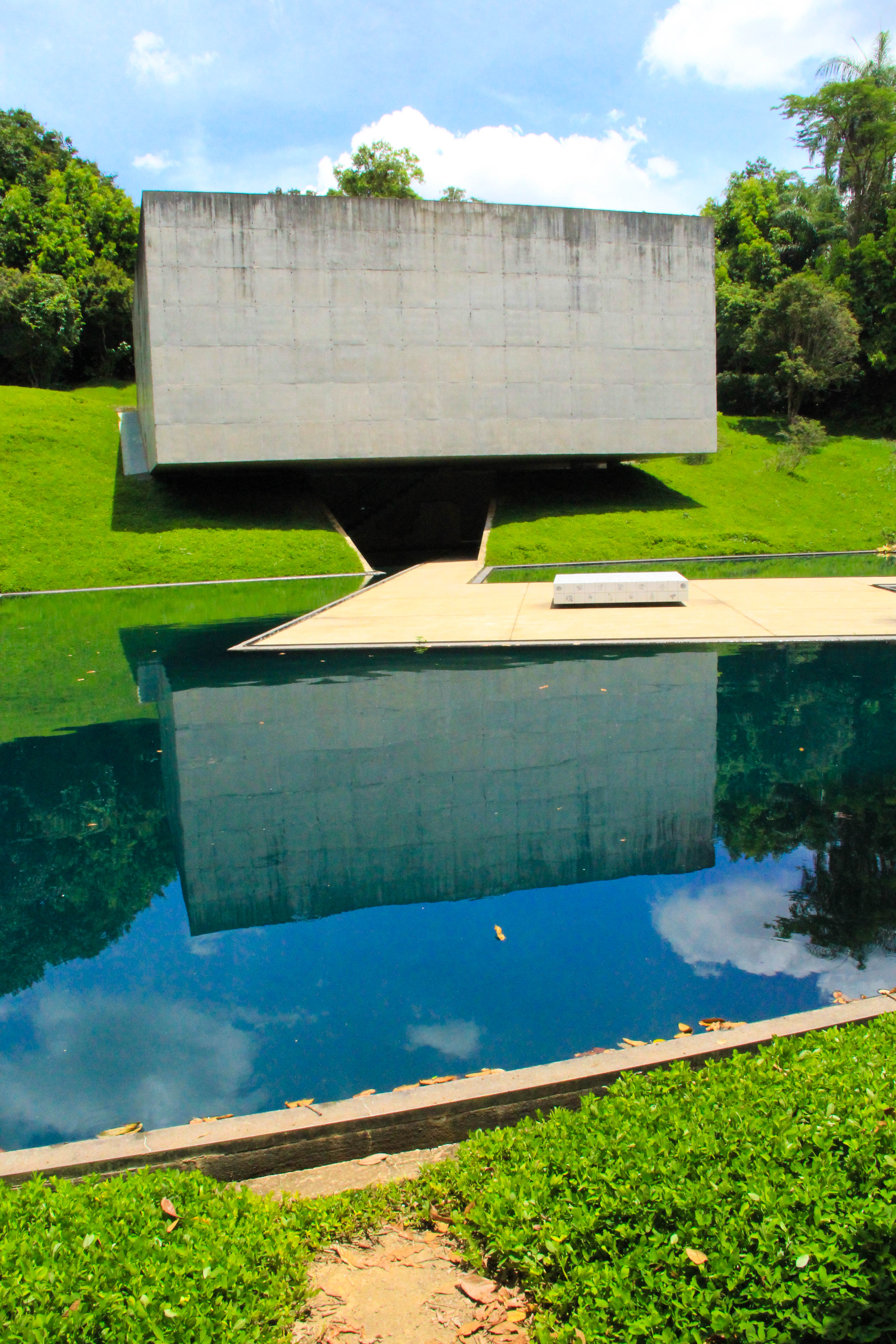 Concreto, vidro, pé direito alto e espelhos d’água são algumas das características marcantes na arquitetura de tirar o fôlego de Inhotim. Com certeza, dá vontade de morar pra sempre em várias galerias do parque.