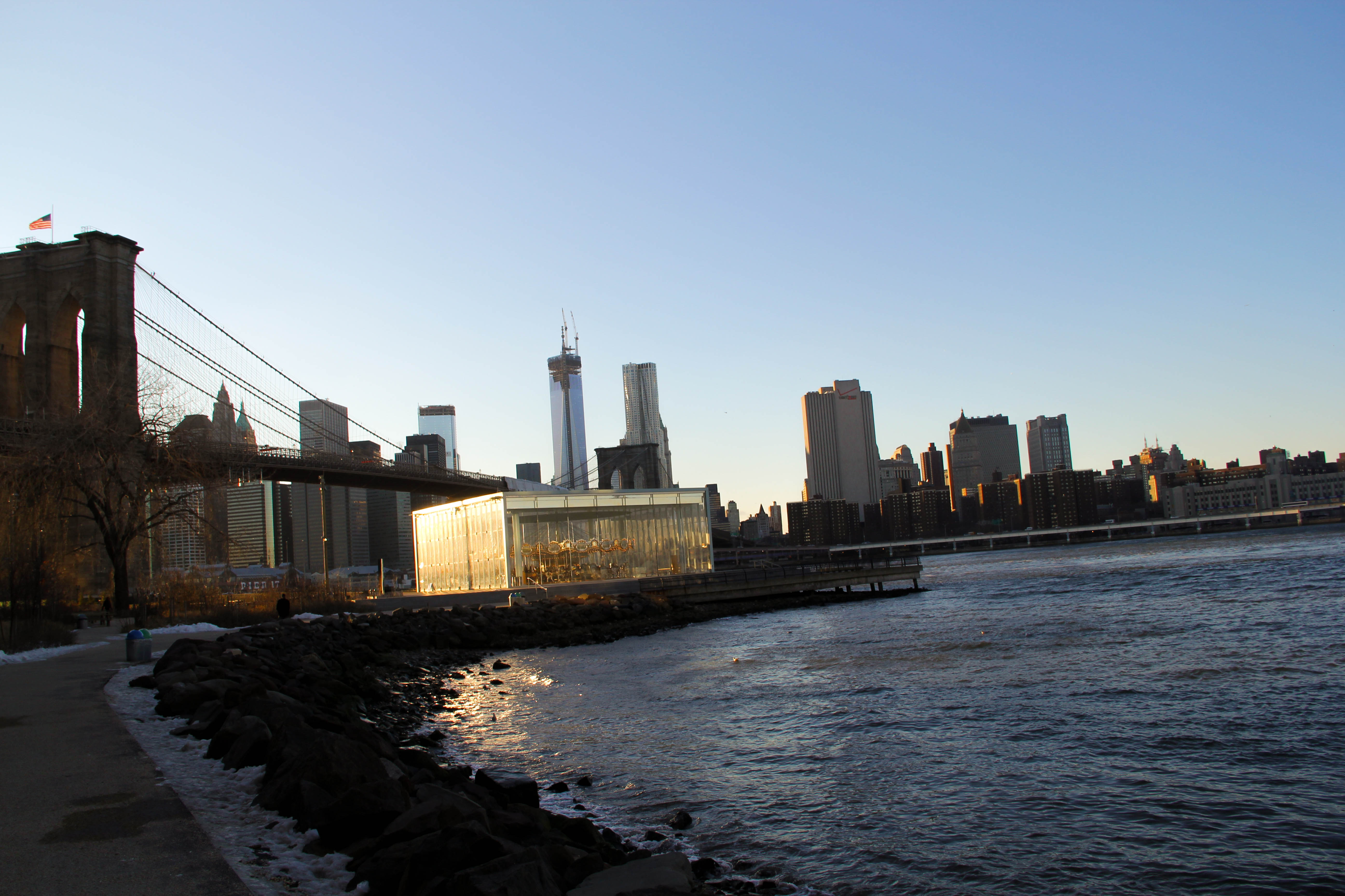 E aproveitando, o Brooklyn Bridge Park também é um passeio obrigatório ao visitar a região. O parque fica às margens do East River, conta com um deck maravilhoso e é o local ideal para um delicioso piquenique. Infelizmente não foi o caso, já que na minha visita, estava um rigoroso inverno (rs).